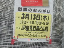 3月の献血活動は 目黒駅前での街頭献血活動を行っています。